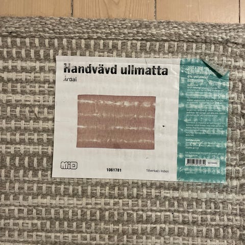 En ullmatta som är stadig och ganska tjock. Hämtas i Bålsta. Kan köras till Uppsala eller norra Stockholm.