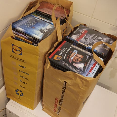 Hej om du har minst en pappkasse med filmer så är jag intresserad men köper gärna flera kartonger med filmer.
