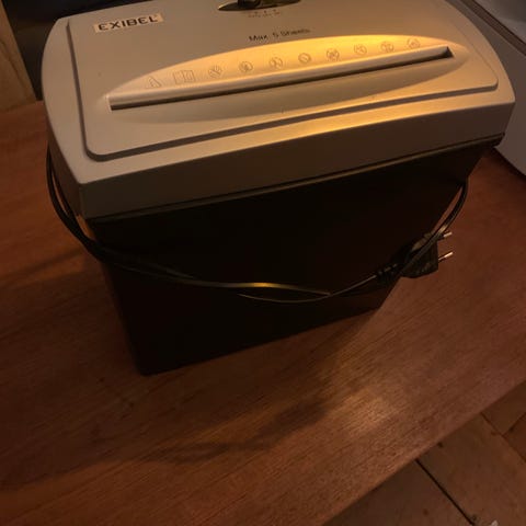 Shreddar en A4 till 3000 bitar. Rymmer 20 L.