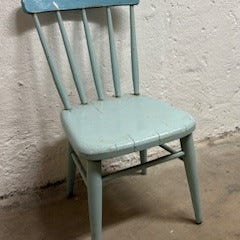 Barnmöbel, pinnstol, mörkbrun, från början av förra sekelskiftet. Ngt skadad på ryggstöd.