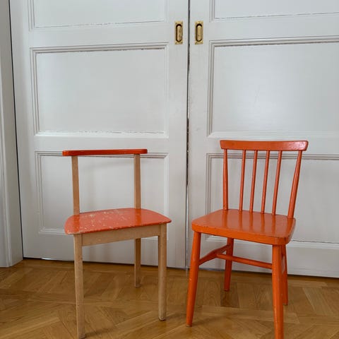 Barnmöbel, pinnstol, mörkbrun, från början av förra sekelskiftet.