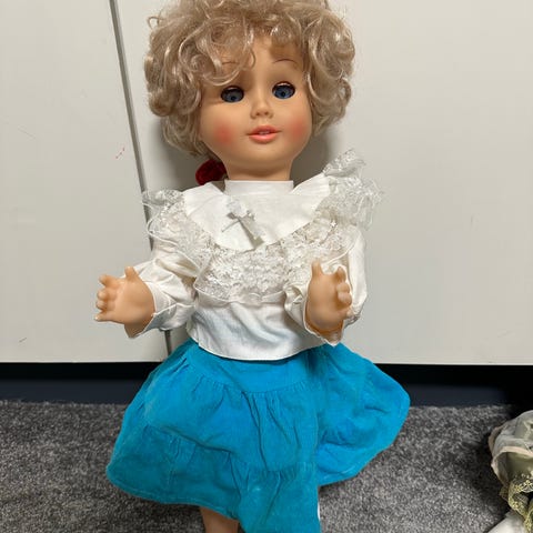 Det här är en söt docka. Om du häller vatten i den bakifrån kommer vattnet att rinna ut ur munnen.