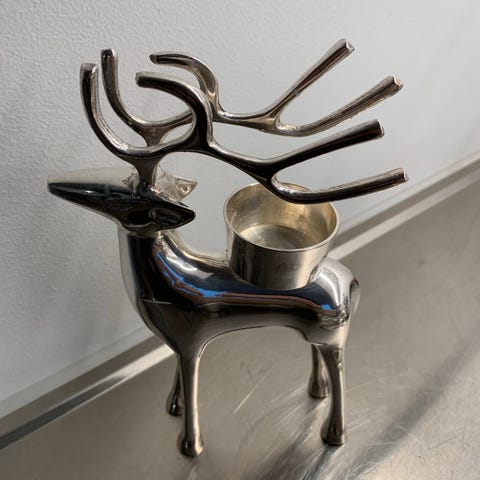 Ljusstake i svart metall för fyra ljus och med fruktfat i mitten