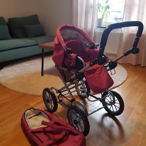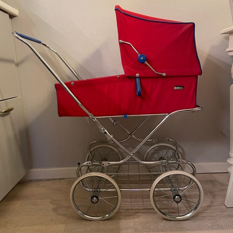 Klassisk retrostil BRIO barnvagn i fint skick. Brun med kromdetaljer.
