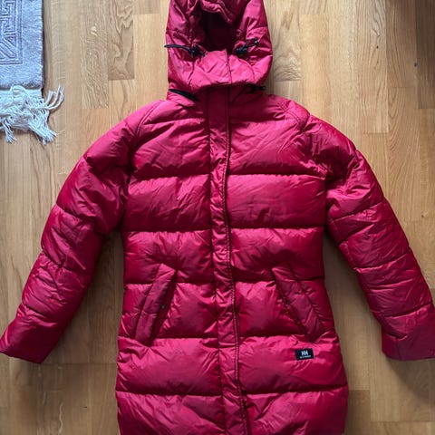 Helly Hansen kort dunjacka i storlek S för dam. Jackan är mörkgrön, dunfodrad och med vatten/vind avvisande yttertyg.
