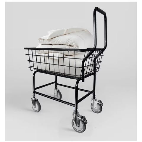 Röd, stabil, rymlig shoppingvagn med extra ytterficka. Kan hämtas i Stockholm (centrum).