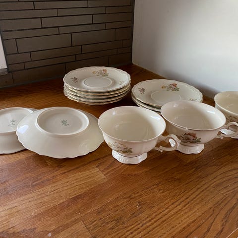 Vintage tefat med blommor – 5 st, porslin, 12 cm