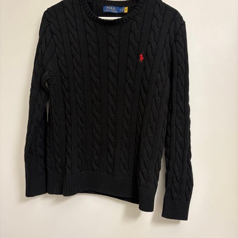 Ralph Lauren tröja som passar storlek XS för herr, marinblå färg. Tröjan har en kabelstickad struktur och är försedd med märkets logotyp på bröstet.