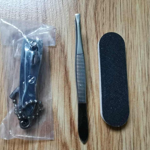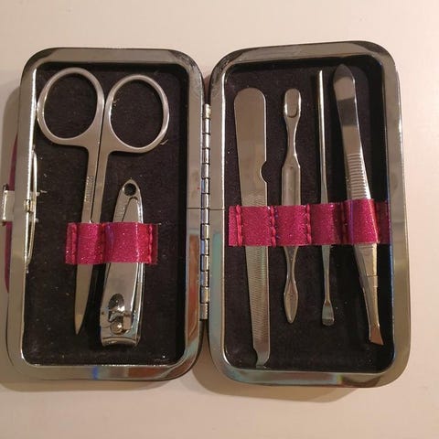 Ett paket med mest oöppnade produkter som blivit över efter en nagelutbildning.