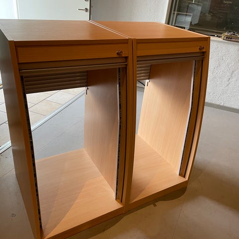 endast använd i studiomiljö så nästan i nytt skick. Rack i både vertikalt och horisontellt läge. https://www.thomann.se/flyht_pro_l_rack_12u_10u_profi_sf_wheels.htm