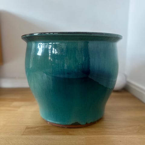 Edelweiss blomkruka tillverkad i keramik med mörk och beige mönstrad yta. Passar för inomhusbruk som dekoration eller för plantering av växter.