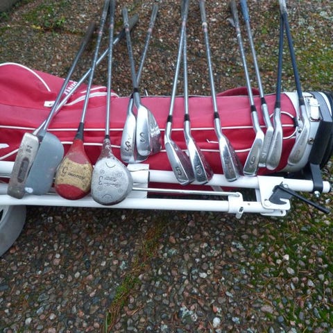 Prestige Golfset bestående av en golfbag och flera golfklubbor. Flera detaljer i läder.