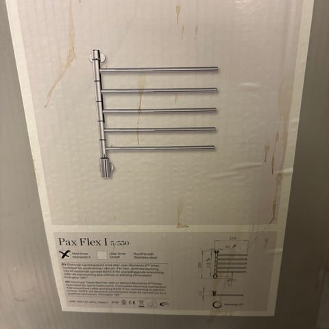 Elektrisk Handukstork Pax Flex U har 3st. individuellt svängbara u-formade armar L=650mm med timerfunktion.