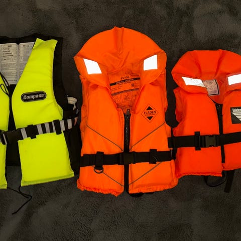 2 flytvästar med grenrem, 25-40 kg, 50 newton.