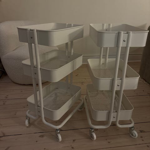 IKEA vesken rullvagn i svart färg. Har tre hyllplan för förvaring och enkel åtkomst. Finns att hämta i Skanstull.