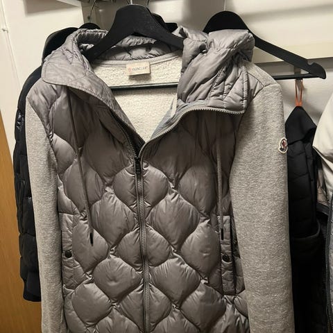 Moncler Övriga ytterkläder i storlek L, svart färg och tillverkad i dunmaterial. Plagget är avsett för kvinnor och är en del av Monclers kollektion för ytterkläder.
