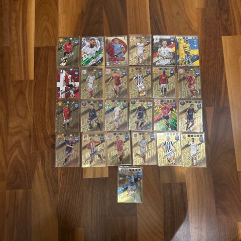 Säljer av lite gamla fotbolls kort som är ungefär 7-9 år. Aldrig använda bara legat i pärmen. Finns Limited edition kort och fans favorite kort. Lewandowski är ett stort kort. Om ni bara vill ha något enstaka kort så kan ni skriva det.