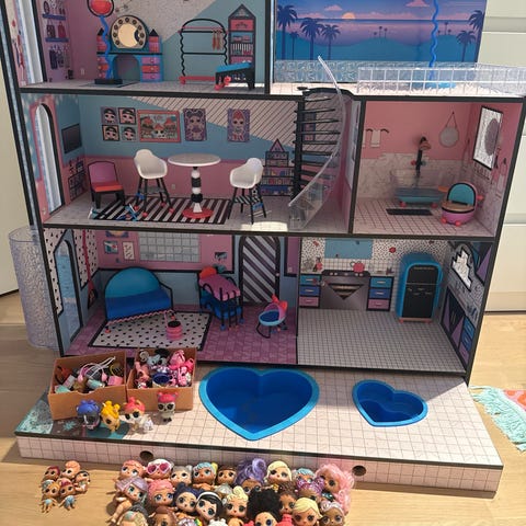 L.O.L. Surprise dockhus för barn med flera rum och detaljerad inredning. Dockhuset har en färgglad design med olika möbler och tillbehör samt dockor