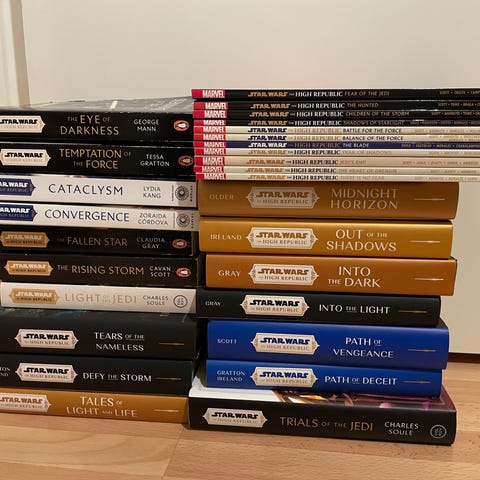 Boken till vänster visar en samlingsutgåva av serietidningen Star Wars: Dark Empire.