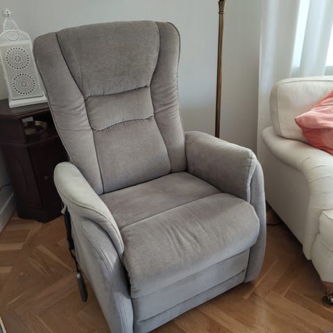 Fåtöljen som är mycket bekväm för svankstöd och lyfthjälp. Som gör det enkelt att sätta sig och lyfta sig.. Fåtöljen är helt ny...