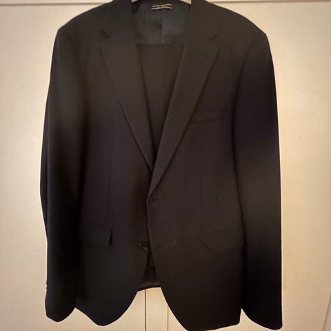 Stilig tredelad kostym i marinblått av märket Riley. Ullblandning. Fodrad. Använd ett fåtal gånger.