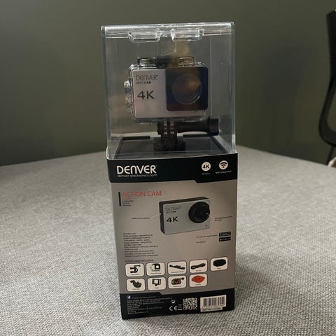 Denver ACT-1301 actionkamera inklusive olika monteringsfästen och remmar. Kameran är svart och levereras med användarmanual. Passar för användning vid sport och utomhusaktiviteter där handsfree-inspelning krävs.