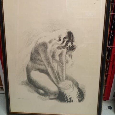 Trevlig karikatyrteckning av kärleksparet signerad och daterad -82.