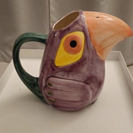 Kanna för t ex vatten. Höjd handtag 25 cm, höjd själva kannan 18 cm, 10 cm i diameter