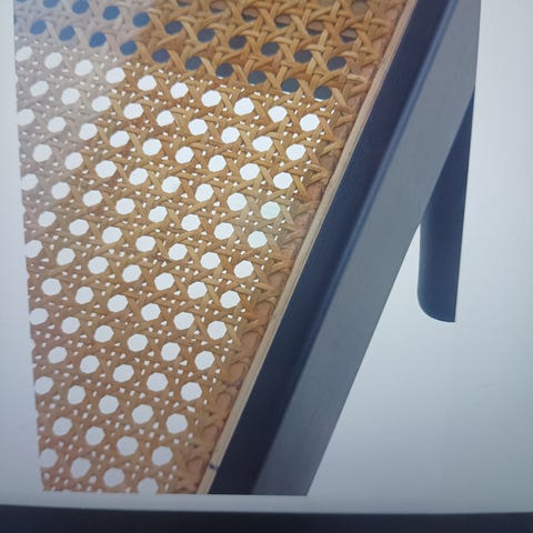 Bordet har en glasskiva över rottingväven.
