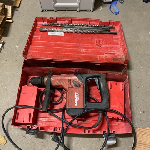 Würth H36_mas borrhammare inklusive två batterier, laddare och extra handtag. Verktyget är utformat för borrning och slagborrning i olika material. Färg: svart med röda detaljer.