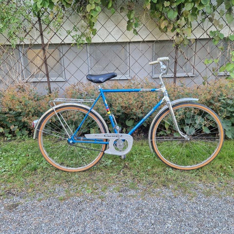 Köpt och renoverad ca 2018 av cykelreparatör, och fick då ny sadel och ev byttes andra delar ut från annan cykel. Har underhållits årligen fram till 2023.