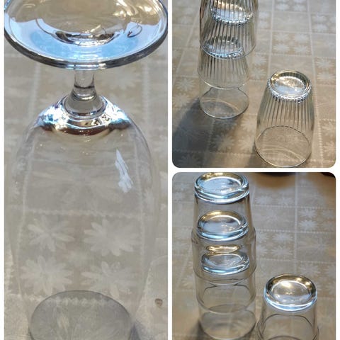 Vitvinsglas (ca 15 cl): 50 kr/st eller 250 kr för alla sex.