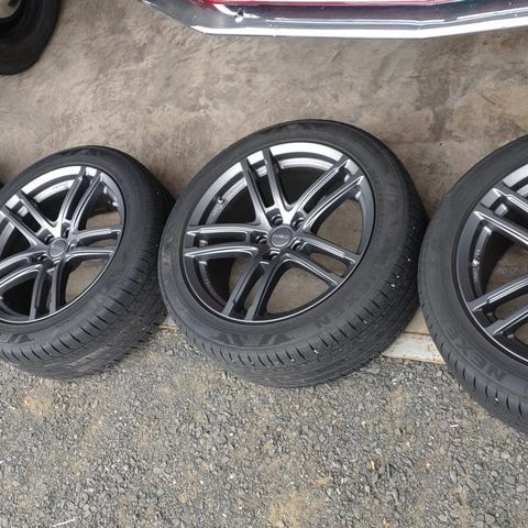 4 Mazzini däck med aluminiumfälgar. Väldigt bra skick, använt i 2 månader endast förra säsongen. Som ny. Kvitto finns. 215/55 R18