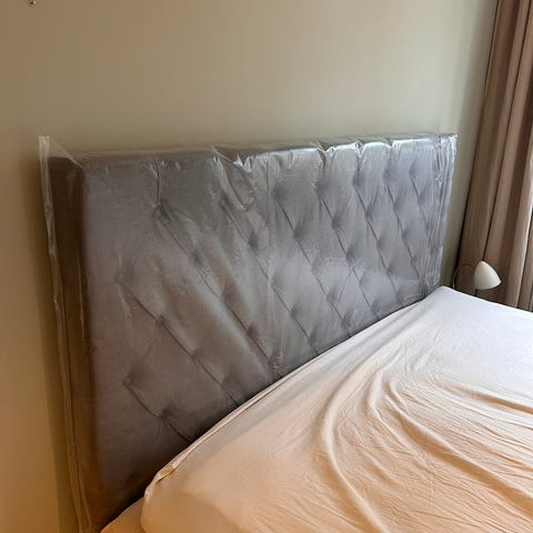 Sänggavel från DUX. 180 cm bred. Endast uppackad - aldrig använd. Nypris 18000. Tyget heter Border 15 (gråbeige kulör). Första bilden lånad från internet. Skriv om du vill se fler bilder.