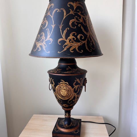 Vintage bordslampa med rund glasfot.