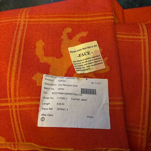 Säljer 3 gardiner broderade med röda blommor (168*136 cm).