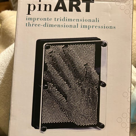 Pin Art 3D består av en platta med stift som du kan skapa tillfälliga 3D verk med.