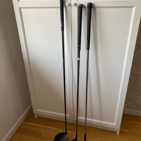 3 stycken äldre Fairwaywood klubbor. Äldre klubbor, men fungerar fortfarande för samtliga kategorier av spelare.