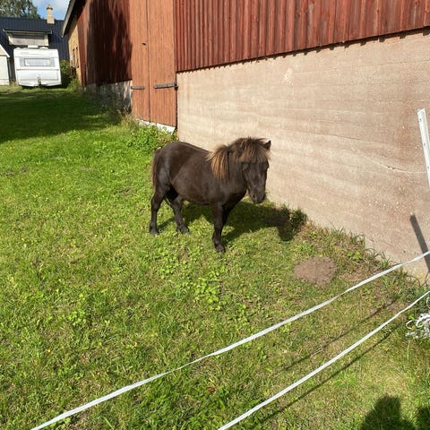Min 3 åring håller på med henne själv och leder och leker i paddocken