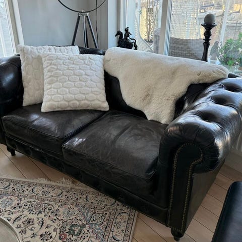 2 knappar saknas på soffan. Armstöd synligt använd