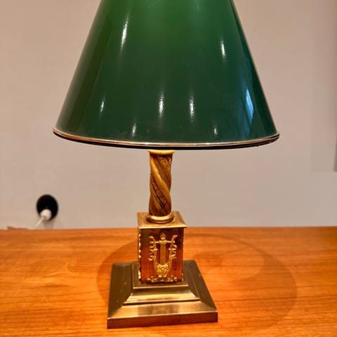 Tillverkad i mässing med dekorativa detaljer. För två ljus. Höjd 60 cm