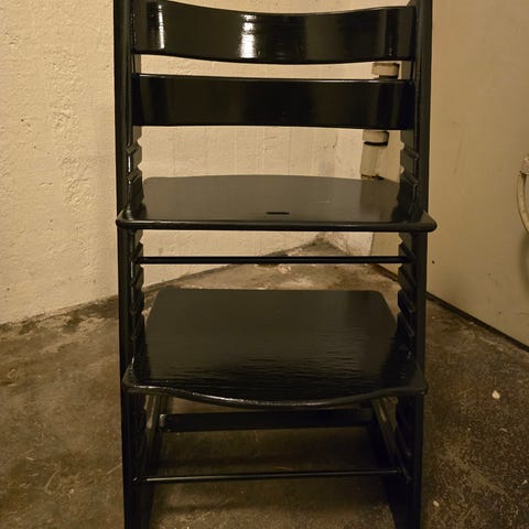 BabyDan barnstol i vitt trä med justerbar fotplatta och sittdel. Stolen är utformad för barn och har säkerhetsbälte för trygg användning samt dyna. Passar för barn i olika åldrar tack vare justerbara funktioner.