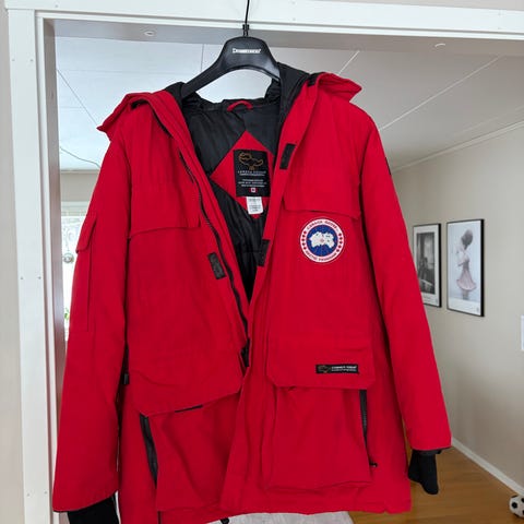 Canada Goose Arctic Program Parka beige storlek xs dock jackan är rätt stor. Yttermaterialet består av 85% polyester och 15% bomull, med foder i 100% nylon. Jackan är vadderad med 90% dun och 10% fjädrar. Tillverkad i Kanada, avsedd för kallt väder.