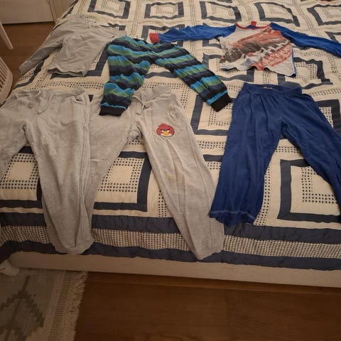2 par träningsbyxor (1 st S med ett hål på knäet, 1 XL barnstorlek som passar en XS)