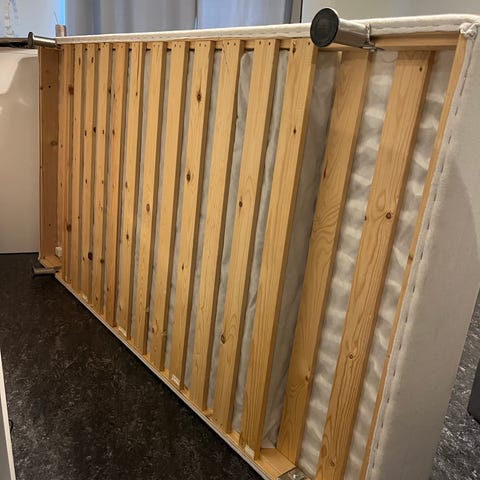 Ikea sängstomme med 2 sänglådor, 90x200 cm, säljer två st använda men i bra skick en har en liten skada på sidan.