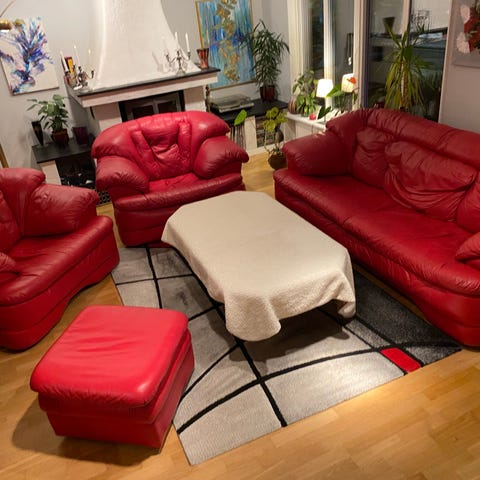 Läder soffgrupp, Italiensk design, som ny.