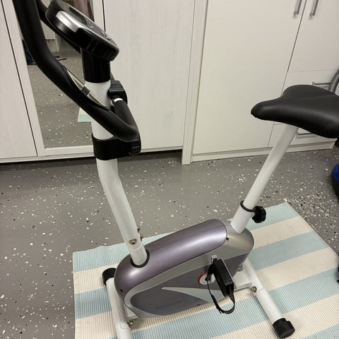 Trekrunner motionscykel för inomhusträning. Utrustad med handtag och justerbar sadel för anpassad användning.