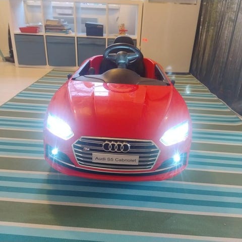 Den här Tesla-inspirerade elbilen har fungerande LED-strålkastare, öppningsbar “frunk” för leksaker och levereras med Tesla-märkt laddare. Svarta “turbin”-hjul och den grå lacken gör den perfekt som julklapp – redo för garagekörning, vardagsrumssafari eller uppsikt på uppfarten.