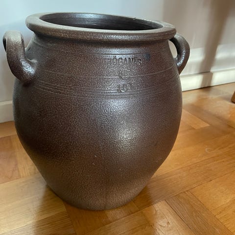 Set med bruna keramiska krukor i olika storlekar. Krukorna har rund form och två handtag på sidorna. Materialet är keramik och färgen är brun. Passar för förvaring eller dekoration. Bara Höganäs krukor i olika storlekar