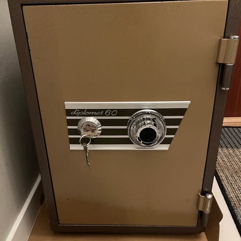 Stadigt och tungt kassaskåp från kvalitetsmärket Rosengrens (Göteborg).